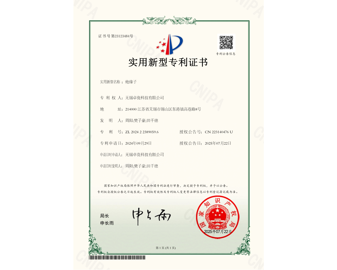ZL2024223890596-绝缘子-实用新型专利证书 -